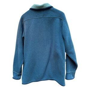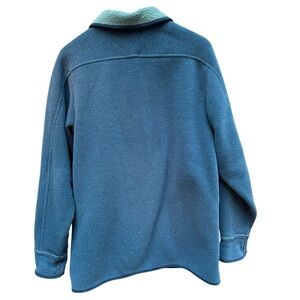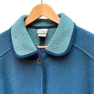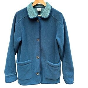 Vtg LL Bean Fleece Chore Barn Coat Womans M Blue/ Green Button Up Warm USA Made