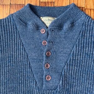 Vtg L.L. Bean Heavy Wool Henley Fisherman Sweater High Trek Yarn Blue Mens L