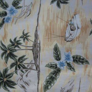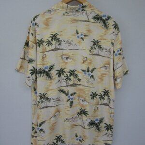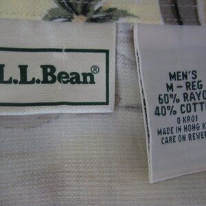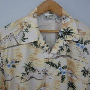 Vtg LL Bean Mens Medium Yellow Floral Palm Boat Rayon Cotton Hawaiian SS Shirt