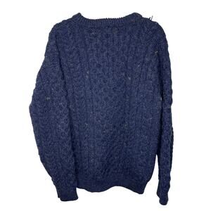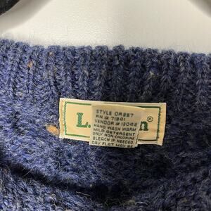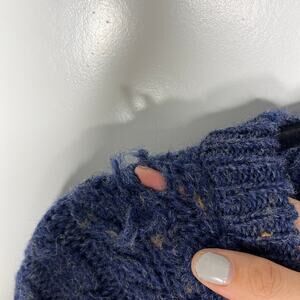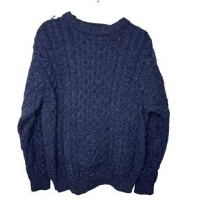 Vtg L.L. Bean Men’s Sweater Size L Blue 100% Wool Cable Knit Fisherman Flawed