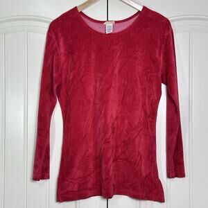 Vtg LL Bean Red Velvet Velour Shirt Womens Size Small Holiday Event Party Top