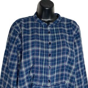 Vtg LL Bean Shirt Womens Large Flannel Plaid Lightweight Pintuck Western Cottage