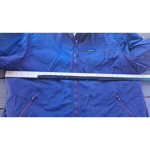 This vintage LL Bean warm-up jacket is a stylish and functional outerwear piece, perfect for casual or workwear occasions. Made in the USA with a durable nylon outer shell and lined with cozy fleece, this jacket is ideal for winter, fall, or spring seasons. The Bomber Jacket style features a stand-up collar, full zip closure, and embroidered logo accents, adding both retro charm and practicality. With a size L and a chest size of 46 inches, this jacket offers a comfortable fit for individuals looking for a warm and versatile option for outdoor activities such as walking, skiing, or hiking.