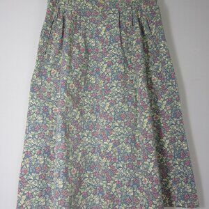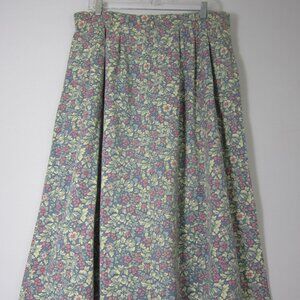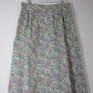 Vtg LL Bean Women XL Blue Pink Floral Heavy Cotton A Line Front Zip Pleats 35"