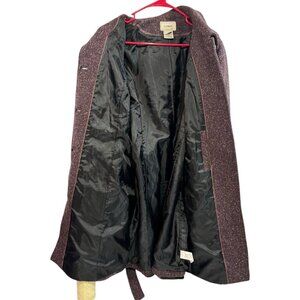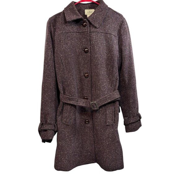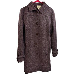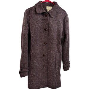 Preowned Vtg L.L. Bean Womens Medium Wool Blend Purple Peacoat Belted Tweed Lined Silk