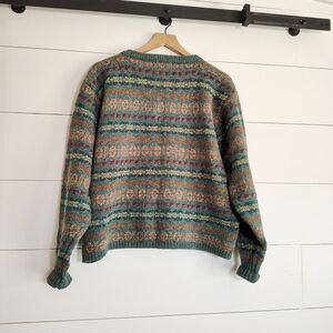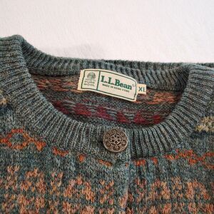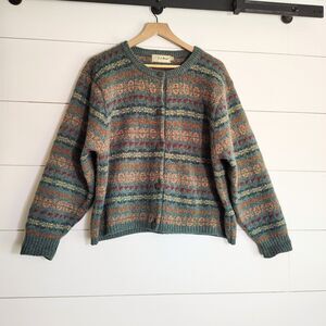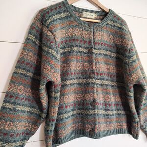 Vtg L.L. Bean Womens Wool Fair Isle Cardigan Sweater Button Front XL