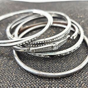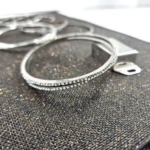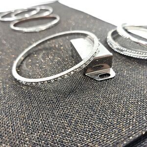 Vtg LOT of 6 Y2K Metal Bangle Rhinestone Silver Tone Metal Bracelets Glam