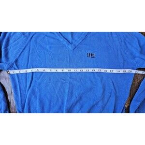Vtg La Mode Lite Beer Logo V-Neck Sweater Blue Sz S Cashmerlon Miller Lite