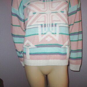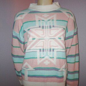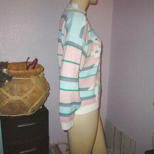 Vtg La Venture 3D Knit Crop Sweater Size L Rainbow Pastel Stripe Fairy Coquette
