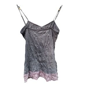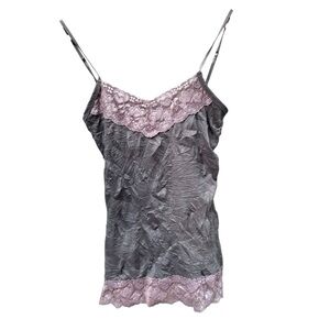 Vtg Lace Crinkle Cami S Y2K 90s Camisole Layering 2000s Fairy Preppy Gray & Pink