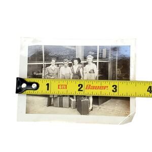 Vintage Ladies Posing in Front of Greyhound Travel Service Original Monochrome Photo Black and White Found Snapshot 2.5 x 3.5 in Landscape.