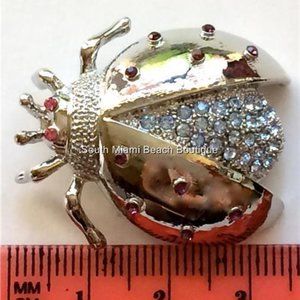 Vtg Ladybug Pin Brooch Silver Plated Pink Purple Crystal Insect Jewelry Lady Bug