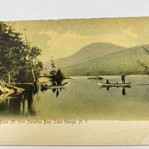 Vtg Lake George NY Postcard Black Mt From Paradise Bay Canoeing Undivided Back