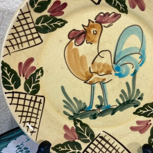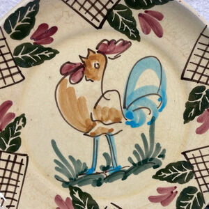 Vintage Lamas potter Italy ceramic rooster plate floral Grid design in great condition