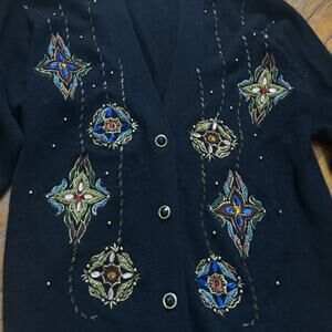 Vintage Lambswool Angora Beaded Long Cardigan Sweater Jewel Gold Medium Carducci 90s
