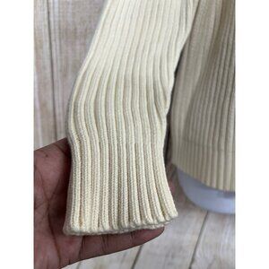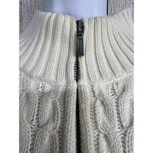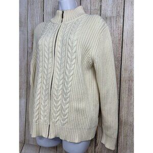 Vintage Lands End Cable Knit Sweater Cardigan Sz M Ivory Full Zip Fisherman Chunky