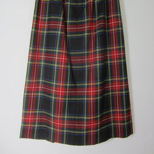 Vtg Lands End Womens P 8 Red Green Tartan Plaid Wool Pleated Midi Skirt Made in Scotland