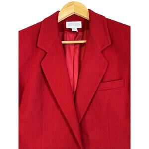 Vtg Lands' End Wool Cashmere Blazer 10 Red Single Button Pockets Long Y2K USA