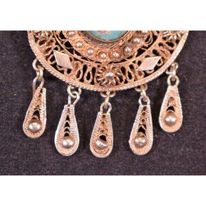 Vtg Large 925 Sterling Silver Filigree Pendant w/Blue Stone & Dangles