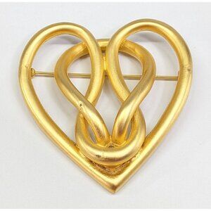 Vtg Large Givenchy Matte Gold Tone Infinity Knotted Hearts Statement Brooch Pin