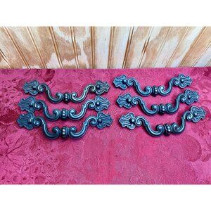 Vtg Large Ornate Brass Drawer Pulls Set Of 6 6" Wide Antique Furniture Hardware