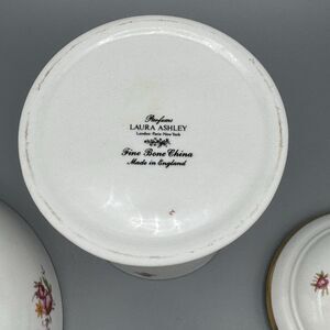 Vtg Laura Ashley Parfums Fine Bone China Bathroom Soap Dish Bowl and Candle Holder Set