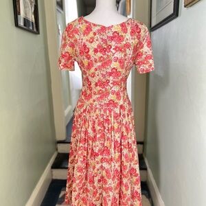Vtg Laura Ashley Tea Dress US 8 Full Skirt Cotton Floral Prarie Great Britain