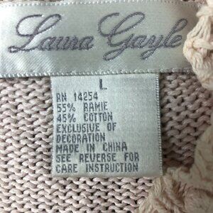 This vintage Laura Gayle sweater offers a charming retro aesthetic with intricate floral embroidery. Crafted from a ramie and cotton blend, it provides both comfort and style. The delicate detailing on the knit enhances its uniqueness, making it a distinctive piece for those who appreciate timeless fashion.