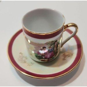 Perfect for collectors, this tea cup and saucer set is a must-have addition to any dining ware collection. The country/region of manufacture may be unknown, but the quality and beauty of these pieces speak for themselves. Indulge in a sip of your favorite tea or share with friends and family, this set is sure to impress. Pre-owned. In good condition. Box included. Extra saucer and stand not included. Please see pictures for details.