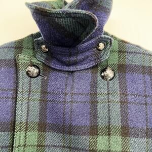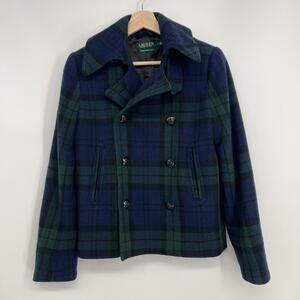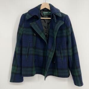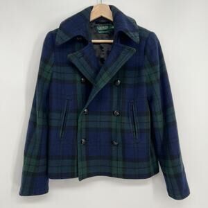 Vtg Lauren Ralph Lauren Black Watch Plaid Peacoat Wool Womens 0 Green Navy