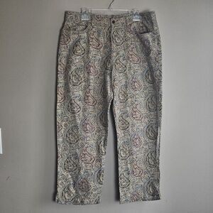 Vtg Lauren Ralph Lauren Pants Women's Size 16 Linen Blend Beige Paisley Preppy