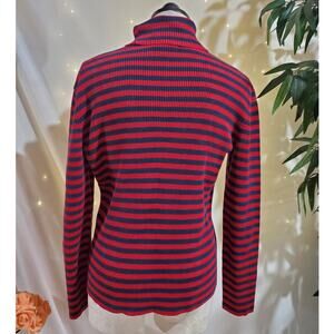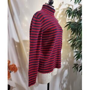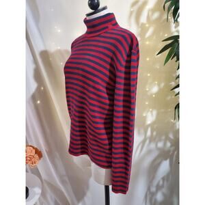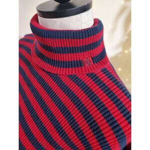 Vtg Lauren Ralph Lauren Striped Ribbed Logo Turtleneck Sweater Womens Size XL Cotton Red Blue