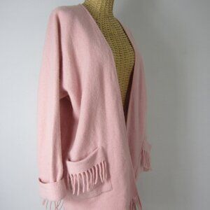 Vtg Laurence Tavernier Womens 100% Wool Eponyme Poncho Pastel Pink Fringe FLAW