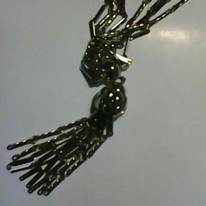 Necklace consist of 4 strands and a tassel that has a 3 1/2 " drop. It's in excellent condition.