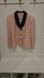 Stylish pink checkered blazer with a bold black collar. Ideal for office or casual wear.3 buttons. 2 faux pockets. shoulder pads.