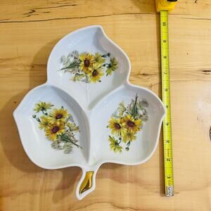 Vintage Partitioned Leaf Design Porcelain Serving Dish. Hand-Painted w/ Yellow Daisy Flowers. Multiple uses such as serving nuts and candy. It would also make a great trinket dish or simply displayed by itself as a decorative piece. Marked- 585 Old Nerumberg, Bavaria Germany.