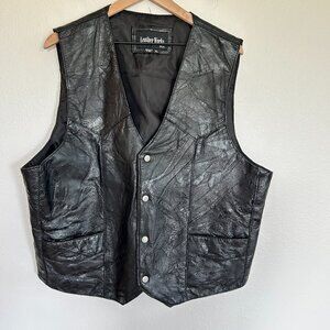 Vintage Leather Works mens size XL black leather patchwork snap vest. Made in USA