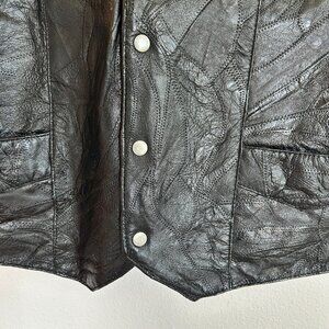 Vtg Leather Works Vest XL Black Patchwork Leather Snap Front Biker Moto USA