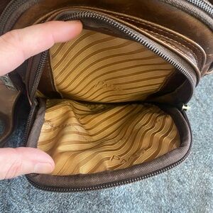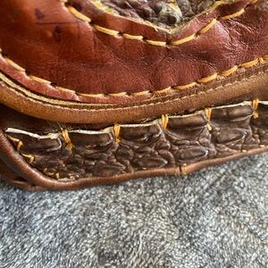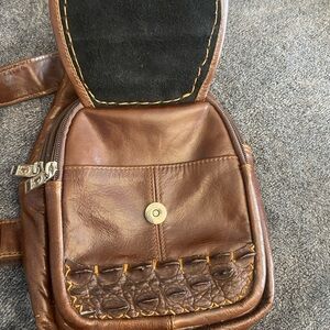 Beautiful Leather cross body bag with alligator skin stitched on. This bag is unisex and wears nicely. No major defects or rips. Bag does not have label for brand.