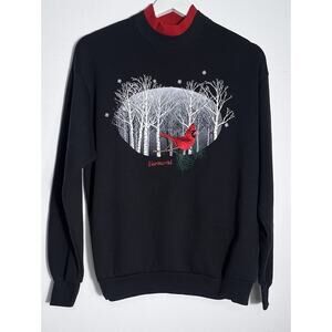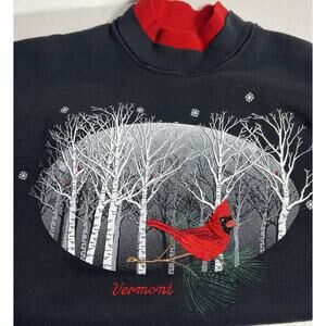 Vtg Lee Black Sweatshirt Winter Red Cardinal Vermont Sz Medium Y2K Grannycore