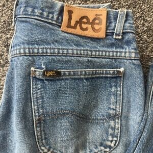 Features: Zip fly with Lee-branded button; metal rivets at stress points