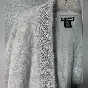Vtg Lee Sands ANGORA Rabbit Hair Open Front Cardigan Sweater Jacket O/S Plus EUC