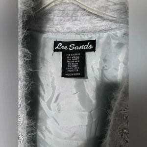 Vtg Lee Sands ANGORA Rabbit Hair Open Front Cardigan Sweater Jacket O/S Plus EUC. This is a plus size cardigan. All beading hand sewn and none are missing. Measurement from shoulder to hem 37 inches (back) and 36 inches (front). Wrist to shoulder seam 26 inches. Armpit to armpit laying flat approximately 28 inches. Since the cardigan is open, it is not the easiest to measure armpit to armpit. This is a beautiful piece. I have taken pictures of the areas that look like some of the rabbit hair is missing, but I believe it is how the material wears. Also this sweater is heavy. Shipping is a flat fee of $20 priority mail.