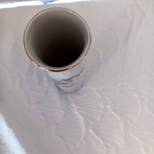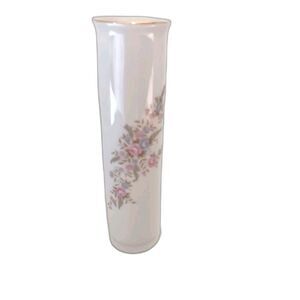 Lefton porcelain hand-painted vase. Romantic floral design with gold trim. Original Mid-century (1962) . Vase is 7.25 in length 2 in wide. Stamped Lefton 7053. Beautiful vase in excellent condition, no chips or cracks.