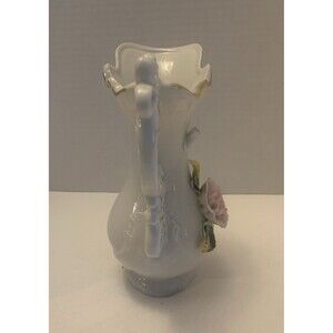 Vtg Lego Ceramic Pitcher With Gold Accents Made In Taiwan with raised flowers