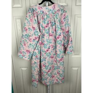 Vtg Leisure Life Quilted Robe Pink Blue Floral Sz XL Cottage Country Look