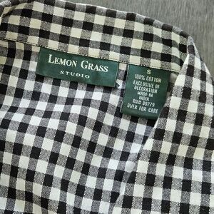 Vtg Lemon Grass Black Gingham Plaid Embroidered Picnic Button-Up Shirt Novelty S