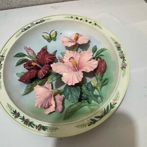 Vtg Lena Liu's 7" Beautiful Garden 3D Plate hibiscus GARDEN Bradford Exchange