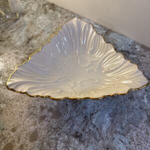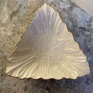 Vtg Lenox Fine China Triad Triangle Ivory Candy Snack Trinket Dish Gold Trim 7"