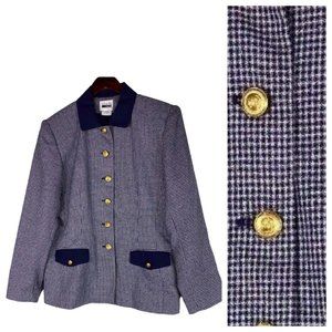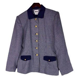 Vtg Leslie Fay 14 XL Blazer Jacket Navy Blue Gold Nautical Gingham Career